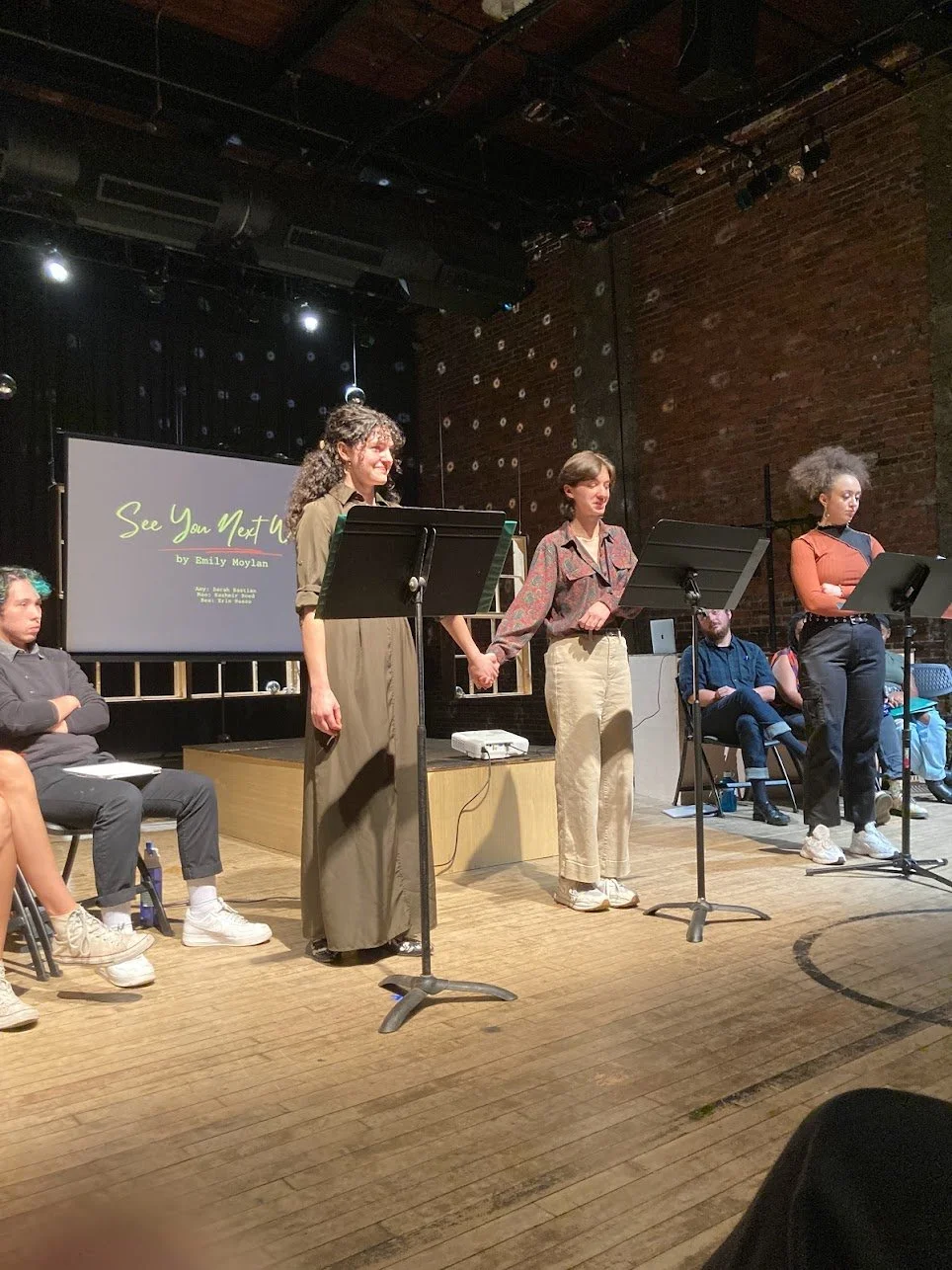 Staged readings are ticketed live events of new plays utilizing a full cast, light blocking, and music stands. These plays may have already been workshopped and are a little further along in the developmental process. Ready for an audience but not quite ready for production, staged readings allow playwrights to present their work in a safe environment and gather feedback as they get their script production ready.